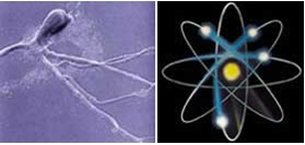 Beyin zülal və yağdan ibarət hüceyrə yığınıdır və neyron (yuxarıda solda) adlanan sinir hüceyrələrindən ibarətdir. Şüuru, əlbəttə ki, neyronlar yaratmır. Neyronların quruluşunu araşdıranda qarşımıza atomlar çıxır (yuxarıda sağda). Şübhəsiz ki, şüursuz atomların şüur meydana gətirməsi qeyri-mümkündür. Ət parçası olan beyinin görüntüləri izləyən, şüuru formalaşdıran, qısası, “mən” dediyimiz şeyi yaradan gücü yoxdur.